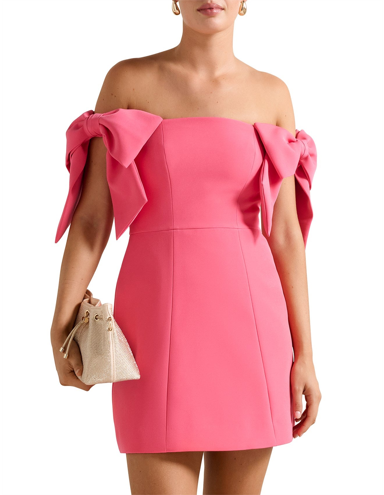 Forever New Adalyn Mini Bow Dress is Feminine glamour meets trending details in these uniquely Melbourne designs. A mini dress designed to dazzle from cocktails to the dance floor