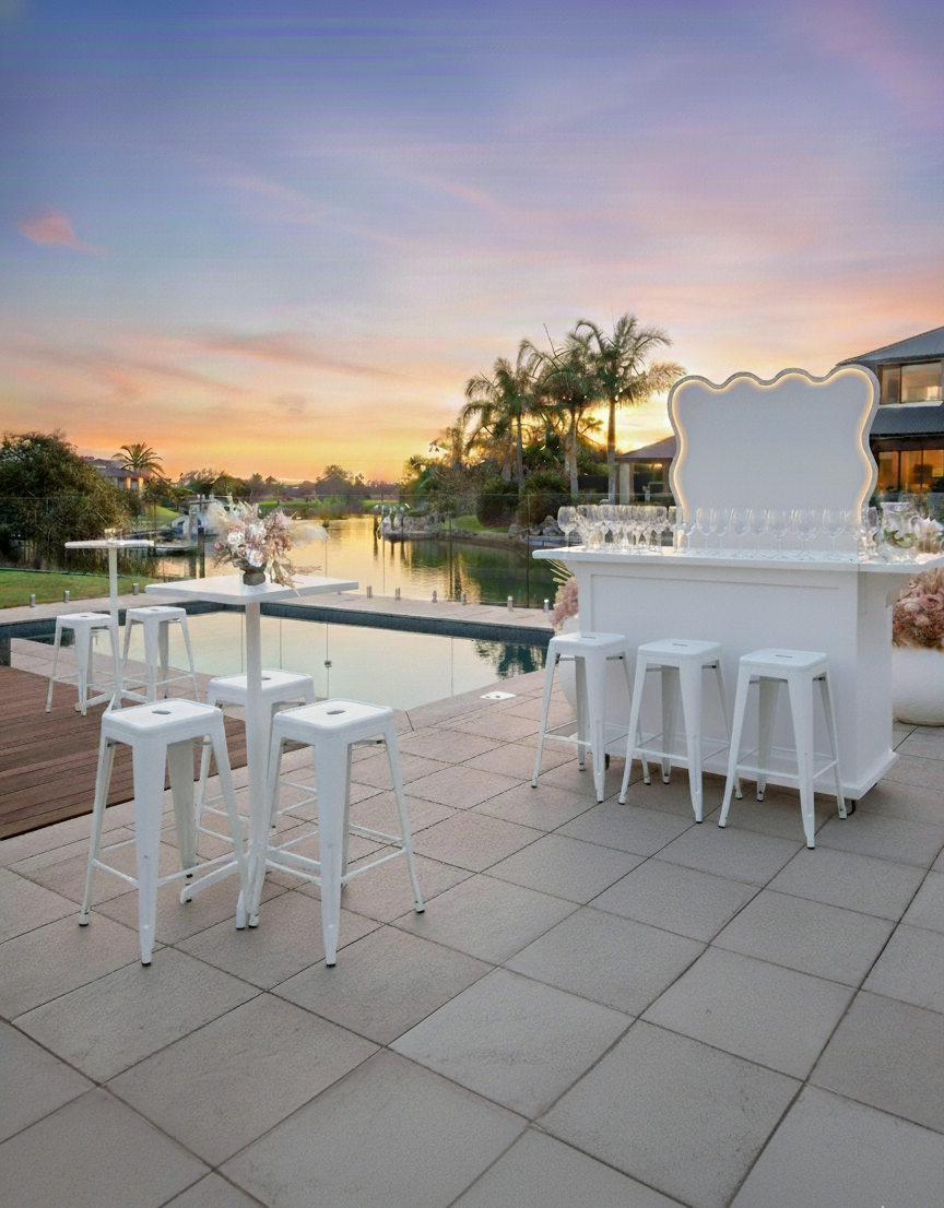 Our White Bar available for hire perfect for your wedding, engagement, baby shower, bridal party etc. DIY so just add your foods or drinks! $180 hire for Friday to Sunday pickup and return to Warana. It folds down flat so easy transport! We can deliver and pickup for a fee.