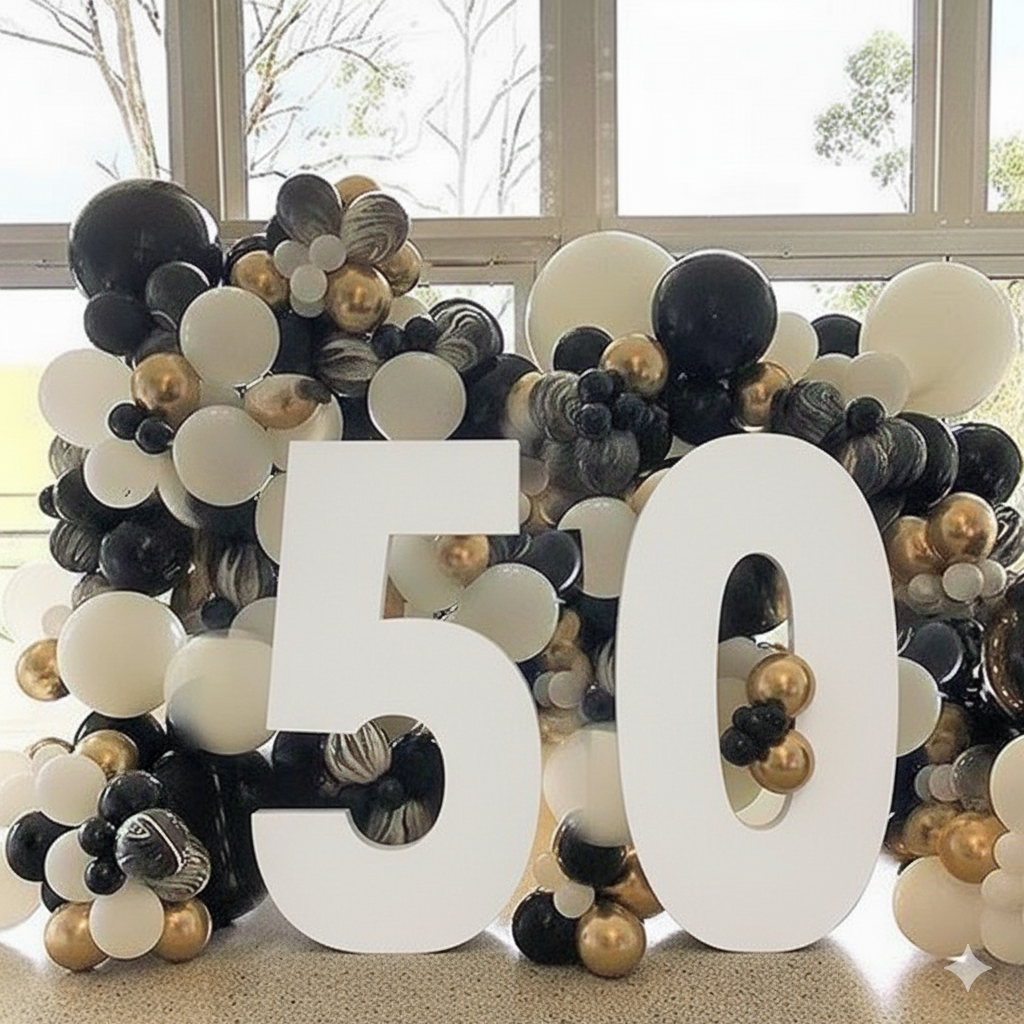 White Timber Birthday numbers for hire. Any combination 0-9. 60cm high on flat stands.